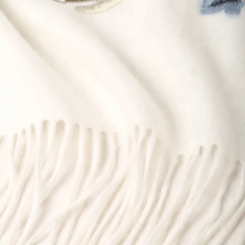 Embroidery Premium 100% Wool Cashmere Scarf Hydrangea Peony Pattern 200 x 70 cm