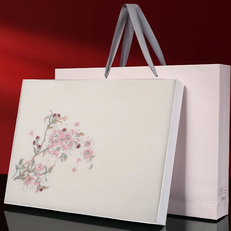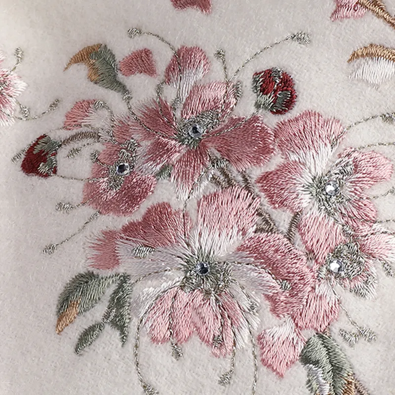 Wrap yourself in warmth and grace with our Embroidered 100% Cashmere Scarf. Inspired by winter Double-flowered Camellia—a symbol of resilience and elegance—each bloom is meticulously hand-embroidered onto soft cream-white cashmere, creating a lifelike, three-dimensional texture. Designed in a cheongsam-style shawl shape, this scarf perfectly blends traditional artistry with modern refinement. Gentle, warm, and timeless, it’s an ideal winter gift for mothers and beloved elders—bringing both comfort and sophistication to every season.