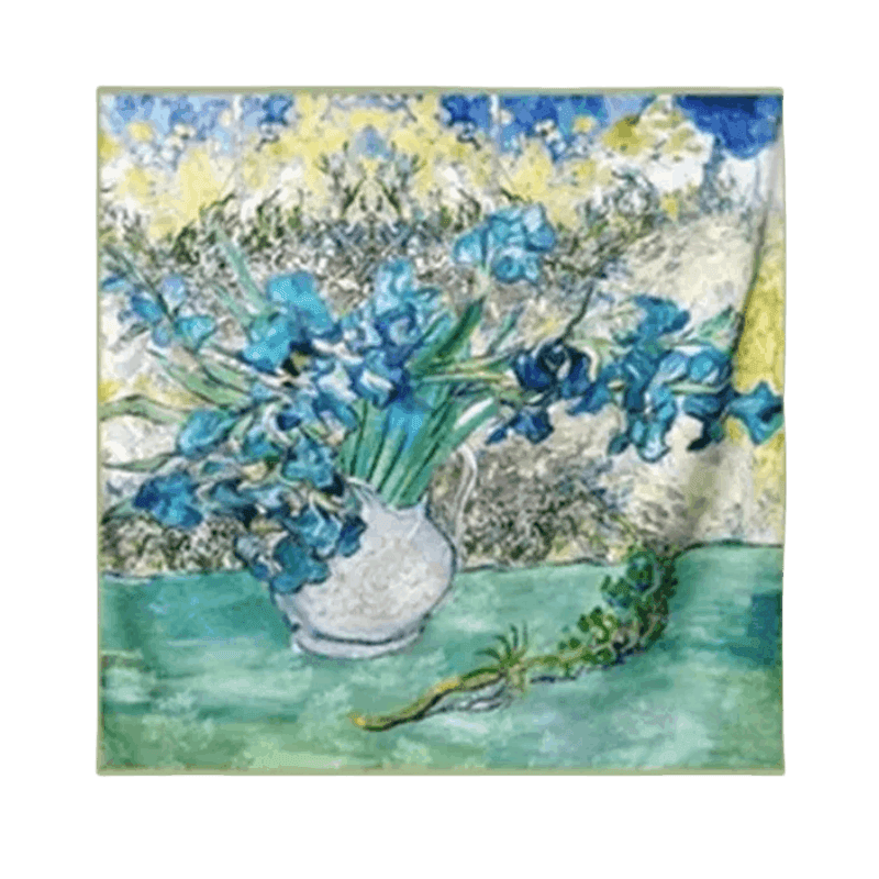 Iris, the epitome of elegance. Our Iris silk scarf blooms with a unique grace, its delicate silk evoking the gentle fragrance of a blossoming spring.