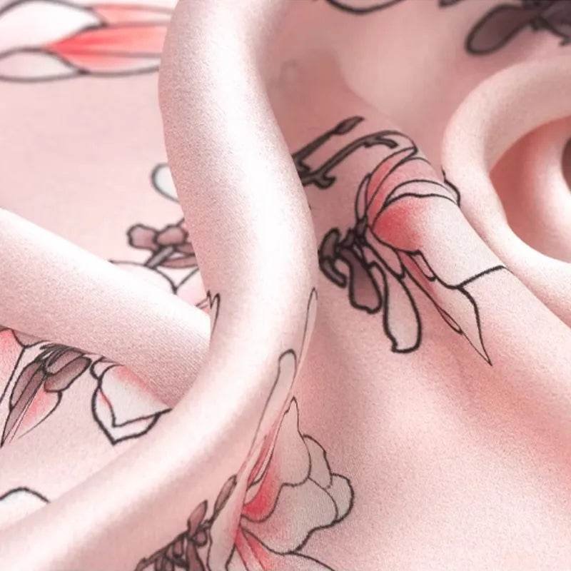 Mulberry Silk 16 Momme Square Scarf Magnolia Blossom Design 68 x 68 Cm