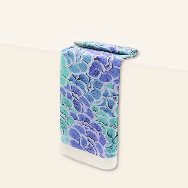 【Sophisticated Aesthetics】Featuring a vibrant blue-green peony design, the scarf showcases a lush, intricate floral arrangement that captures the essence of blooming beauty. The color palette is serene and refined.