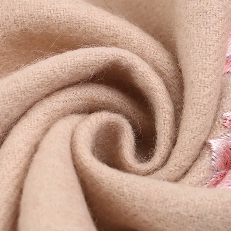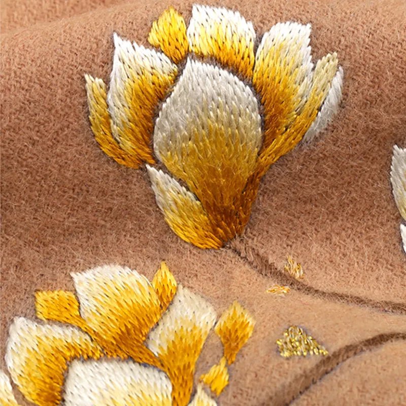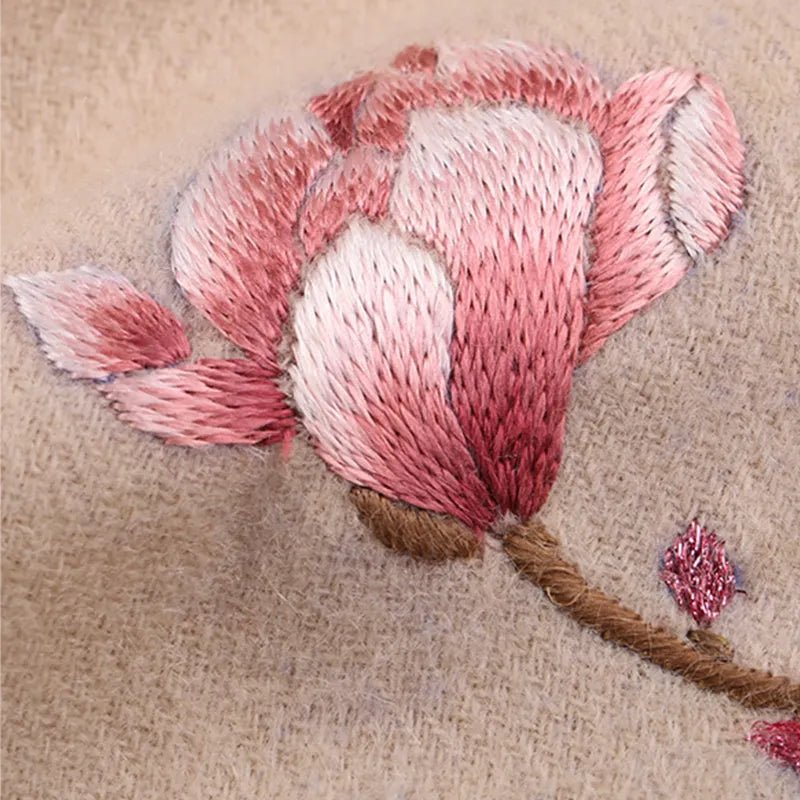 - Features: Cashmere-wool blend fabric is soft, warm, and delicate, with double-sided embroidery where both sides feature the same pattern.