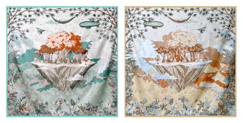 【Heavyweight Mulberry Silk】This product is made from 14-momme heavyweight mulberry silk. The texture is smooth and delicate, with a silky and natural drape. The luster is warm and subdued, creating a subtle and elegant touch, and allowing the print to exude vibrancy and sophistication.
