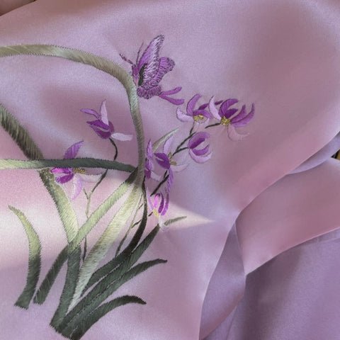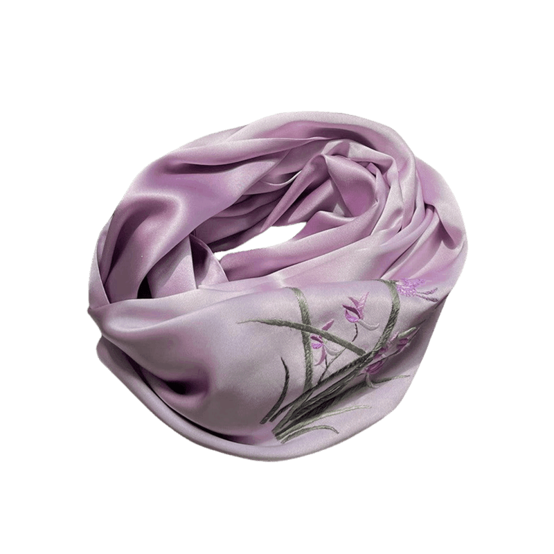 Hand Embroidered Suzhou 16 Momme Silk Scarf Luxury 155x35cm